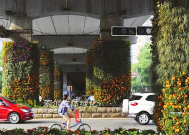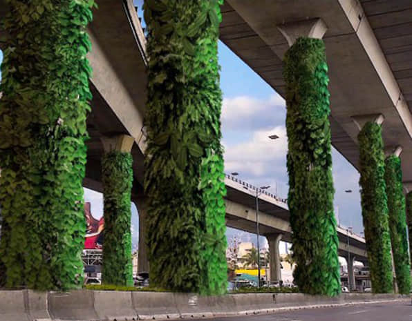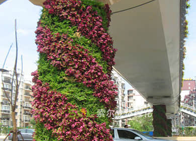 橋墩綠化,可應用于跨路橋、人行天橋、高架橋、立交橋、高速公路、輕軌等橋墩的綠化美化,用于城市道路景觀提升,提升城市整體形象。