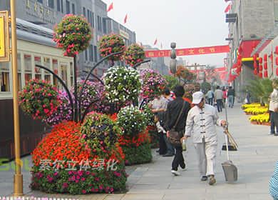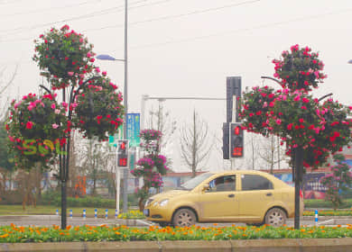行道樹綠化,考慮到要形成立體景觀及遮擋容器,植物要求以開花植物及藤本植物為主,形成有層次的有色彩漸變的立體效果。采用模塊化花箱時,植物還可選擇小灌木。