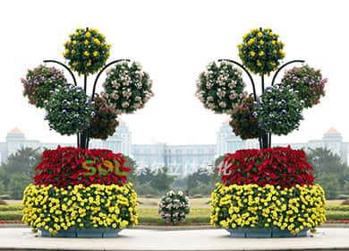 植物品種選擇:彩葉草、常春藤、金葉薯、花葉蔓長春、一品紅、四季海棠、矮牽牛、美女櫻、繁星花、萬壽菊、鳳仙、三角梅、繡球、月季等。