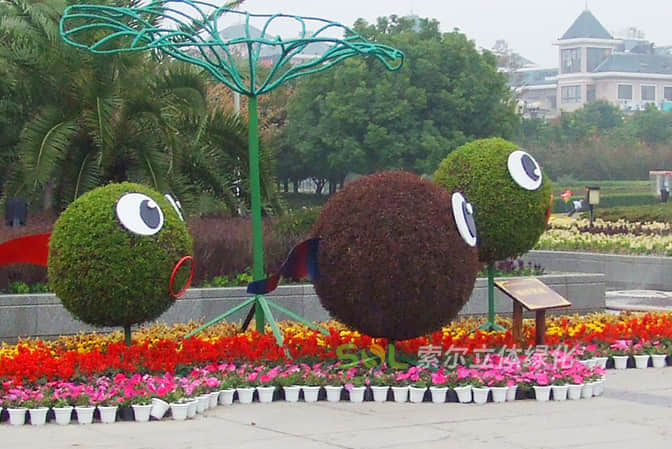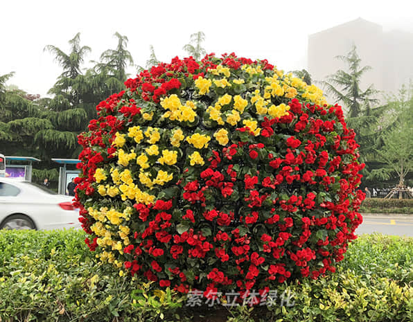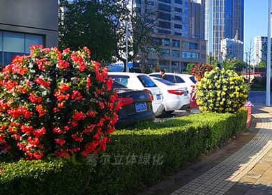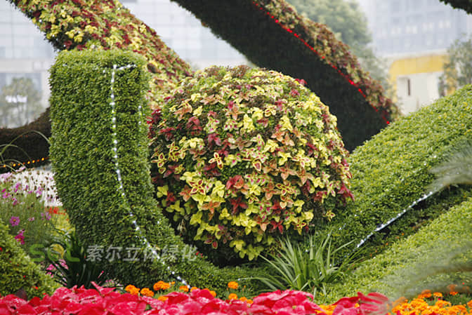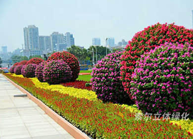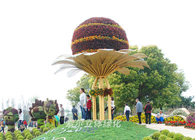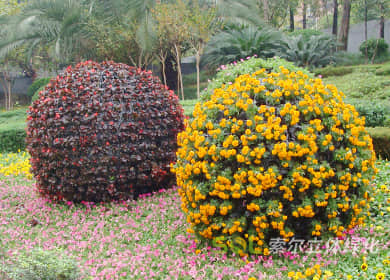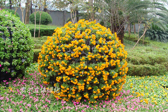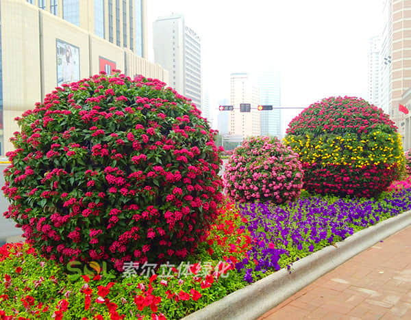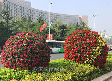 花球既能獨立成景,又可在綠雕中應(yīng)用,方式多樣。節(jié)日、慶典、會議、活動等重要項目都可運用,用紅色系、橙色系、黃色系等花卉,烘托熱烈氣氛。